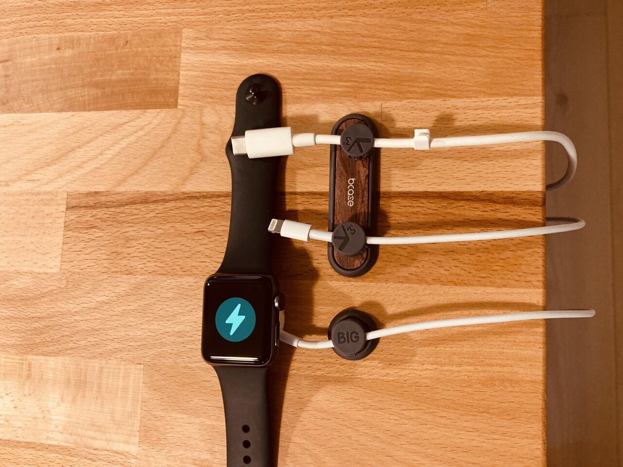 こんな感じでiPhoneやapplewatchのコードが落ちないように磁石で止めておけます。